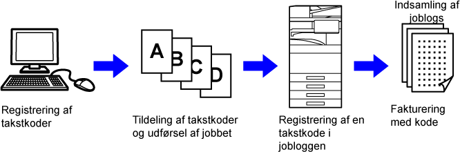 Käytetään suoritettujen tulostus- ja lähettämistöiden tulosten luokitteluun tehokkaan hallinnan käyttämiseksi. Voit esimerkiksi määrittää asiakkaan mukaan koodin ja kerätä kustannustiedot asiakaskohtaisesti työlokeista. Koodiesimerkki: yrityksen A lasku |