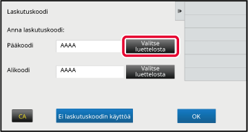 Kun laskutuskoodin syöttöikkuna näytetään, kosketa pääkoodin [Valitse luettelosta]-näppäintä.