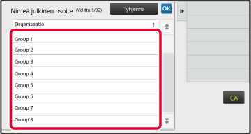 Julkinen kaikille: Rekisteröi laskutuskoodi julkisena koodina kaikille laitetta käyttäville.Kosketa ja valitse ryhmä julkiseksi kohteeksi