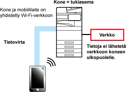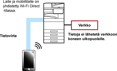 Laite ja mobiililaite viestivät suoraan Wi-Fin kautta.