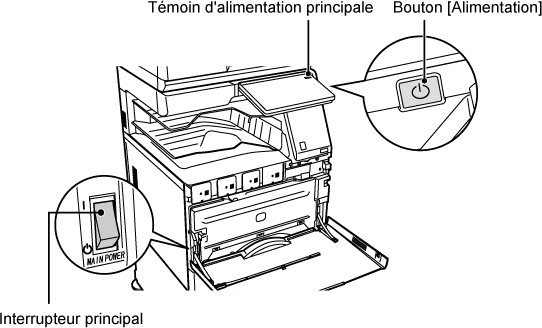 le bouton [Alimentation] et l'interrupteur principal sur OFF, puis
