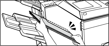 Lorsque vous placez le papier, la touche d'agrafage manuel clignote en vert.Papier | Orientation du papier lorsqu'il est inséré | Après l'agrafage |