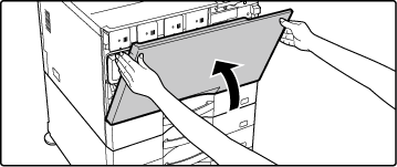 Une fois que la cartouche de toner est remplacée, la machine passe automatiquement en mode réglage de l'image. N'ouvrez pas le capot avant pendant cette opération.Avertissement