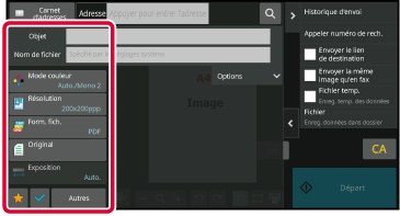 Le fait d'appuyer sur l'onglet situé sur la gauche de