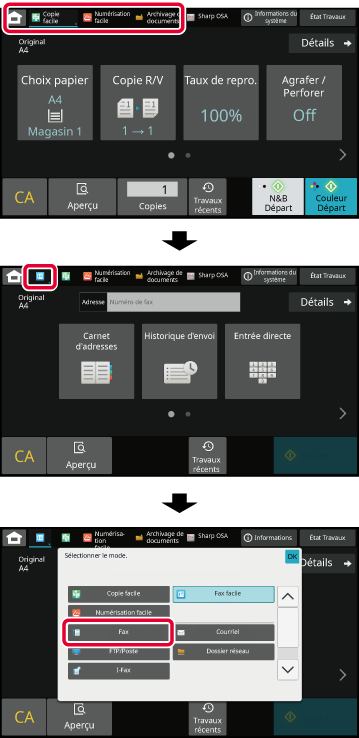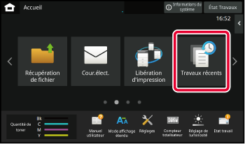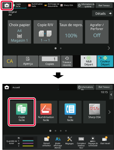 Le fait d'appuyer sur la touche [Ecran d'accueil] permet