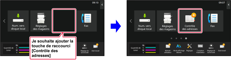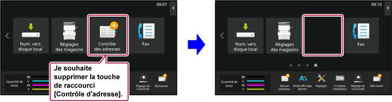 Les réglages sont enregistrés dans la machine et ils sont appliqués.Pour modifier une image de touche de raccourci