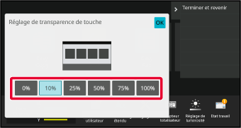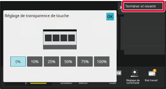 Les réglages sont enregistrés dans la machine et ils sont appliqués.Vous pouvez modifier la transparence des