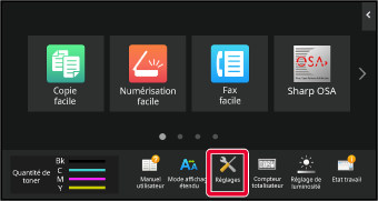 Touchez la touche [Réglages] dans l'écran d'accueil.