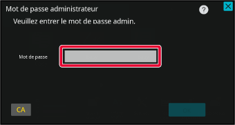L'écran de mot de passe administrateur s'affiche. Saisissez votre mot de passe.
