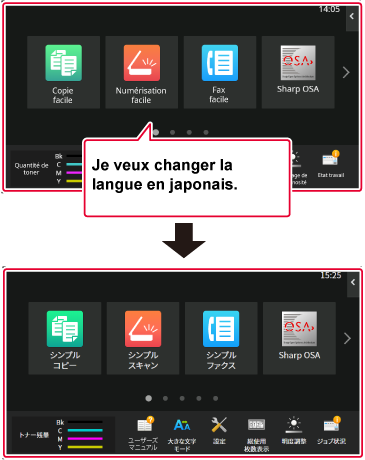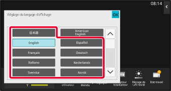 Appuyez sur la touche [Réglage du langage] dans l'écran d'accueil.