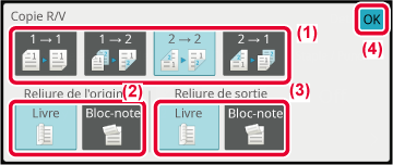 PROCÉDURE DE BASE POUR LA RÉALISATION DE COPIESSélectionnez le mode copie recto verso.