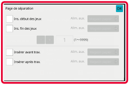 de copies, vous pouvez spécifier d'insérer la page de séparation