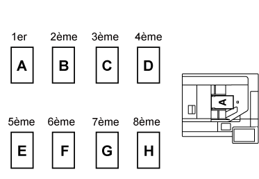 sur une feuille ou l'option 8-Up pour copier huit pages originales