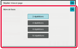 SÉLECTION DE L'ORIENTATION ET DU FORMAT DU DOCUMENT ORIGINALAppuyez sur [Nbre de faces] pour définir le nombre de répétitions.