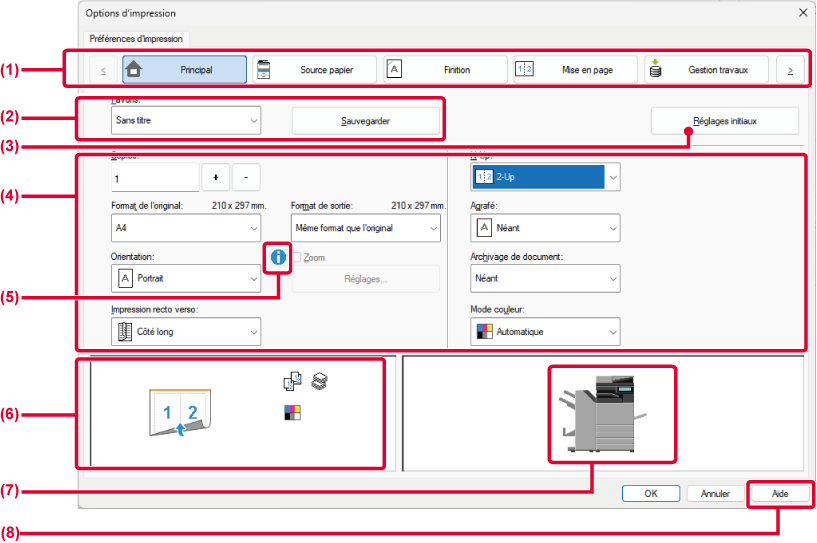 l'impression en tandem ou d'autres réglages d'impression détaillés.