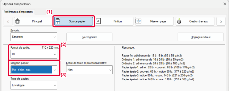 "Type de papier" est automatiquement défini sur [Enveloppe].