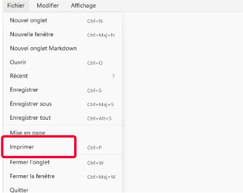 Sélectionnez [Imprimer] dans le menu [Fichier] de Notepad.