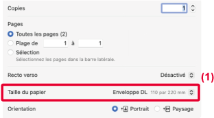 - Dans le menu "Type de papier", sélectionnez [Enveloppe].