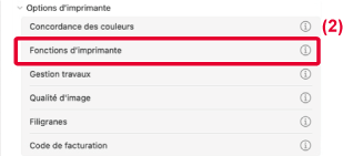 - Sélectionnez [Fonctions d'imprimante] dans « Options d'imprimante »,