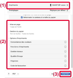 utilisé pour exécuter l'impression peut varier en fonction de l'application.
