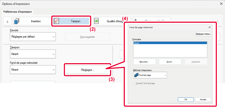 utilisée pour l'impression avec un fichier de fond de page mémorisé.