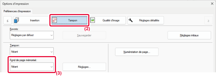 Lorsque [Tampon personnalisé] est sélectionné dans le "Type enregistré",