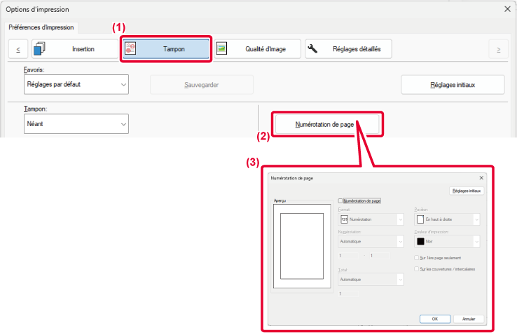 à l’en-tête ou au pied de page des données d’impression. Vous pouvez également