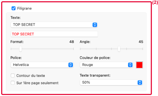 - Cliquez sur la case à cocher [Filigrane] et configurez