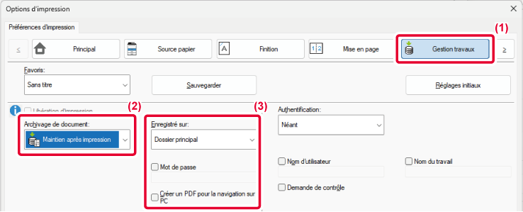 activée sur la machine, tous les travaux d'impression d'archivage