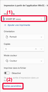 de réglages du pilote d'imprimante afin de pouvoir imprimer.
