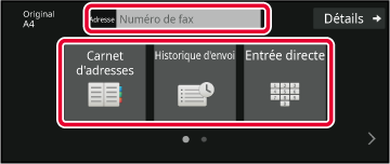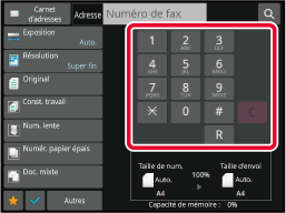 Placez l'original sur le magasin du chargeur automatique de documents ou sur la vitre d'exposition.Saisissez le numéro de télécopie de destination.