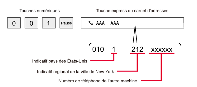 opérateur téléphonique international (par exemple, "001 ") et l'indicatif