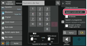 MODE FACILEAppuyez sur [Appeler numéro de rech.] du panneau de sélection.