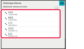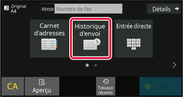 En mode facileDans l'écran initial ou l'écran du carnet d'adresses, appuyez sur la touche [Historique d'envoi] du panneau de commande.