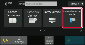 En mode facileDans l'écran initial ou l'écran du carnet d'adresses, appuyez sur la touche [Voir Carnet d'adresses mobile] du panneau de commande.