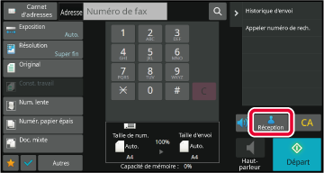 Appuyez sur la touche [Réception] pour recevoir un fax.