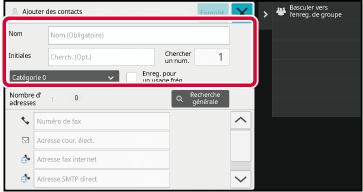 Appuyez sur [Numéro de fax], [Adresse cour. élect.], [Adresse fax internet],