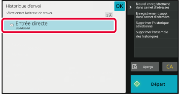 Dans le mode fax ou envoi d'image, appuyez sur [Historique d'envoi]