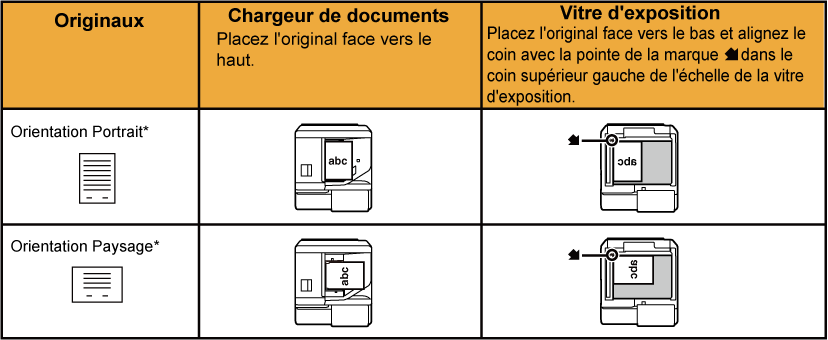 Placez l'original sur le magasin du chargeur automatique de documents ou sur la vitre d'exposition.Avertissement