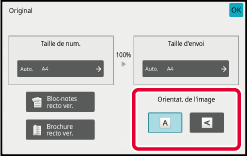 Précisez l'orientation de l'original que vous avez mis en place au cours de l'étape 1.Appuyez sur la touche [N&B Départ] ou [Couleur Départ] pour démarrer la numérisation de l'original.