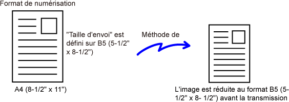 x 8-1/2 po), l'image est réduite avant la transmission.