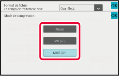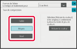(Sur le BP-51C26/BP-51C31/BP-51C36/BP-51C45/BP-51C55/BP-51C65/ BP-56C26, le kit d'extension OCR est nécessaire.) Appuyez sur la touche [Mode de compression] ou sur la touche [Taux de compression].