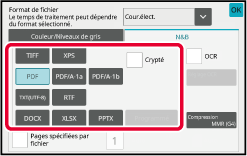 Appuyez sur l'onglet [Couleur/Niveaux de gris] ou [N/B], puis sélectionnez le mode de format pour la numérisation.