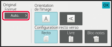 Sur l'écran initial, vérifiez que le format original s'affiche sur la touche [Original].En mode
