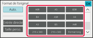 Après avoir sélectionné la touche du format original, appuyez sur la toucheAppuyez sur cette touche pour spécifier