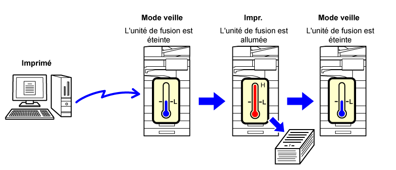 de fusion et fait attendre la machine à l'état de faible consommation d'énergie.