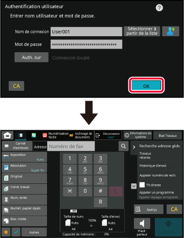 "Connexion locale" et, pour les réglages de la méthode d'authentification,