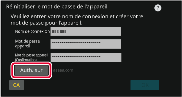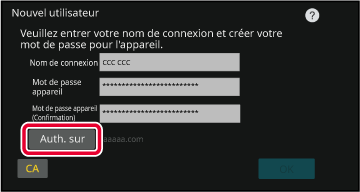 "Mot de passe" et "Mot de passe (confirmation)" ne seront pas affichés sur l'écran