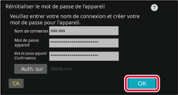 le nom de connexion/mot de passe, appuyez sur la touche "Réinitialiser
