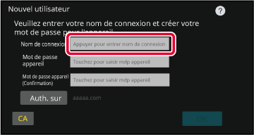 Cela passe à l'écran d'enregistrement des utilisateurs.